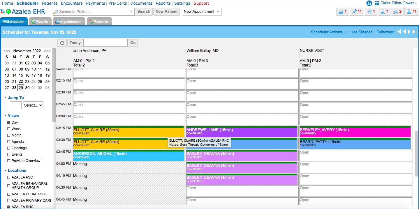 Both assistants work inside the existing Azalea EHR interface. Clinicians and billers access AI tools without switching apps, preserving workflow continuity across scheduling, charting, and revenue cycle modules.
