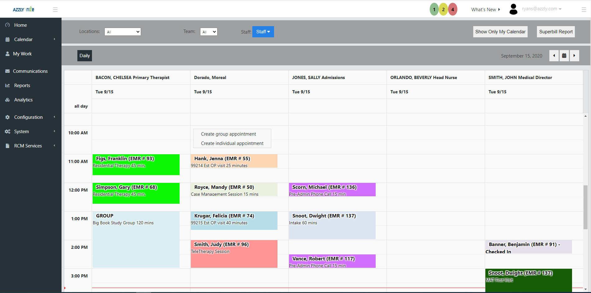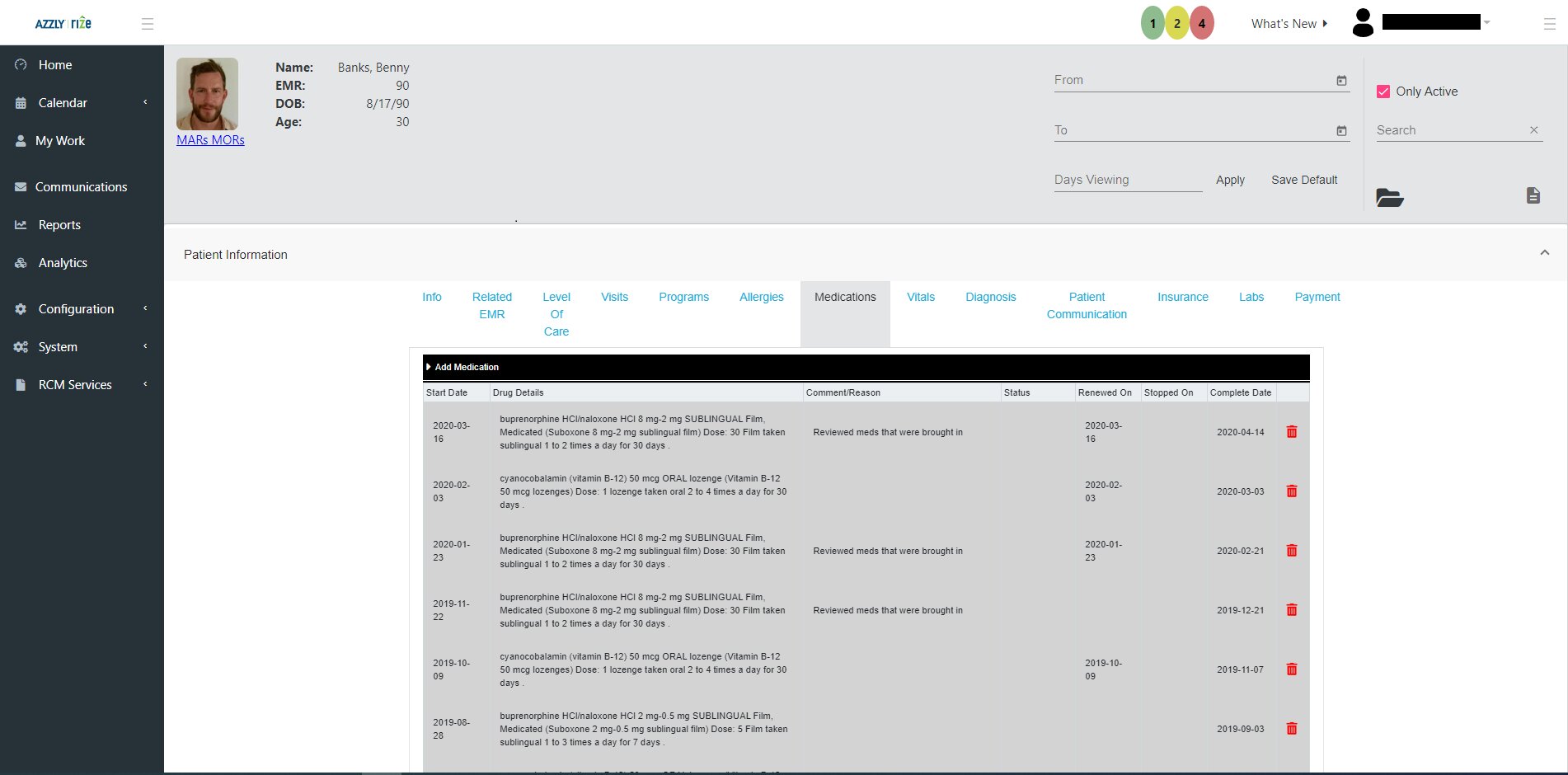 AZZLY Rize is a top-rated addiction treatment and behavioral healthcare-specific EHR, Telehealth Ready and RCM system. We serve small, medium, and large organizations. Rize is very customizable and scalable. Features include e-check-in, scheduling, appointment reminder, EHR, treatment plans, progress notes, outcome measurement tools, medication management, withdrawal management, e-prescribing, EPCS, PDMP, patient communication tools, and electronic billing and claims submission.