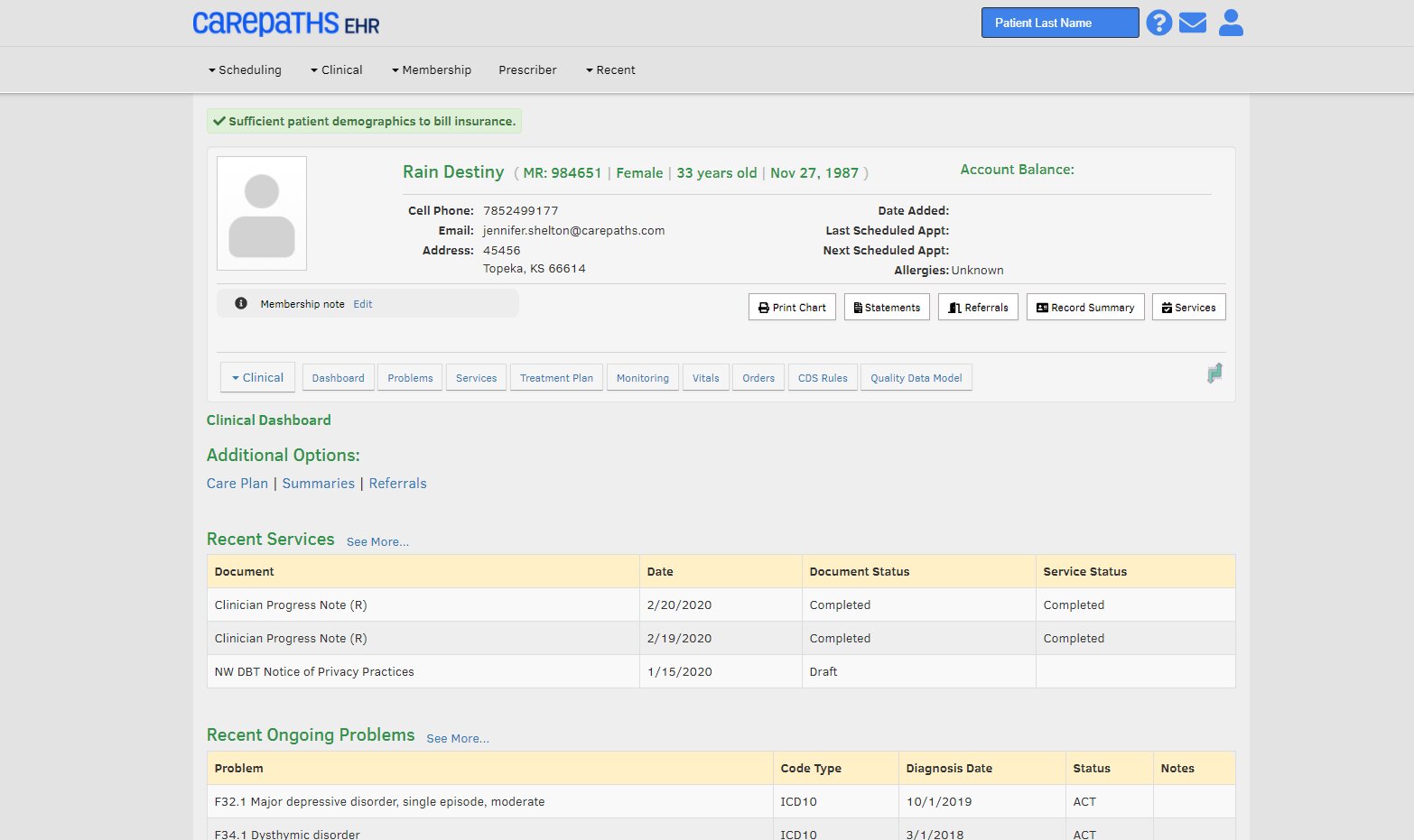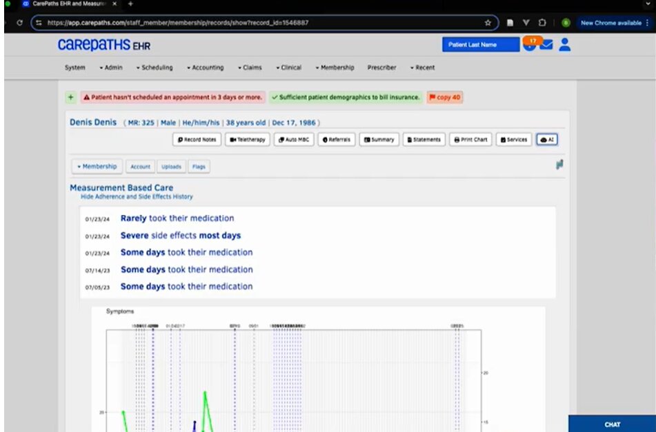 CarePaths EHR is an all-in-one platform for behavioral health providers, offering clinical documentation, billing, scheduling, teletherapy, and measurement-based care in a HIPAA-compliant system.