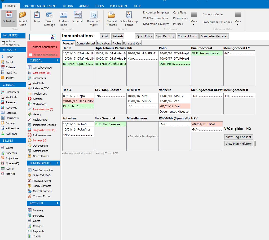 Office Practicum also has a series of pre-designed templates for school and camp forms with more than 175 specifically designed for "sick visits". Practice professionals and medical staff can keep track of a patient's progress and the system will offer prompts for vaccine forecasting, allowing physicians to schedule appointments well in advance. The system also offers pediatric developmental assessments, surveys, and disease-specific action plans.