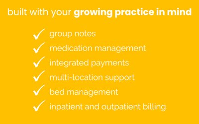 Sold in three packages - prime, professional and platinum - with each supporting progress, assessment and tracking notes; client demographics; the ability to build custom treatment plans; client medication tracking; monitoring of patient vital signs; and team and group notes. The more expensive packages also allow clinicians to track client substance usage while the platinum package allows ePrescribing, continuity of care documents, immunization tracking.