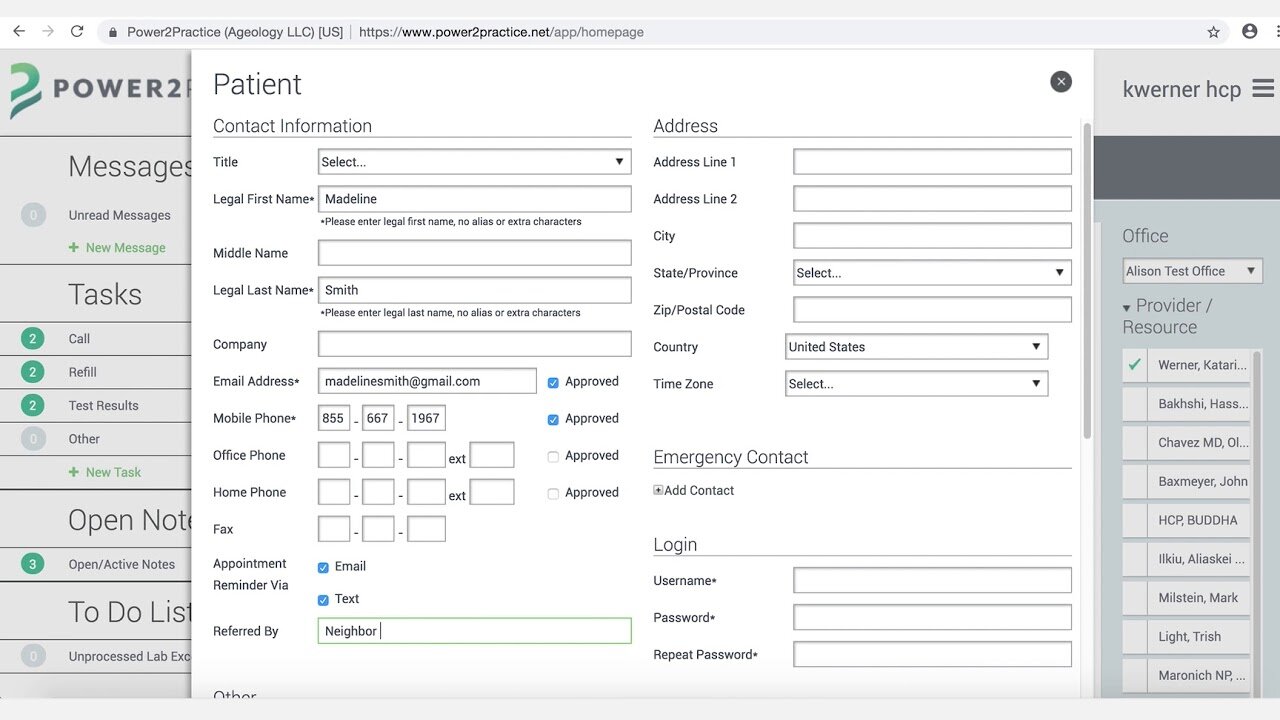 Power2Patient is the portal component of Power2Practice, offering patients secure access to their medical information, lab results, treatment plans, and online scheduling. It enhances communication and streamlines engagement between providers and patients.