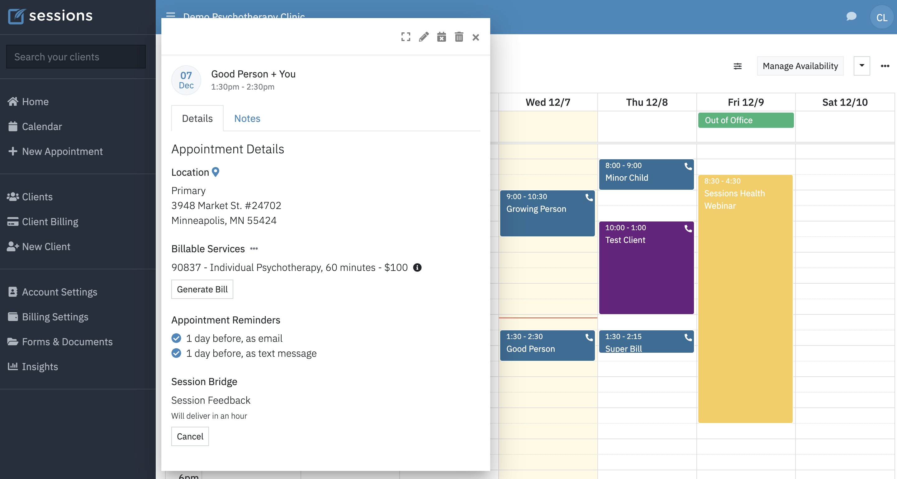 Sessions Health is a cloud-based practice management platform and EHR system built specifically for mental health professionals.