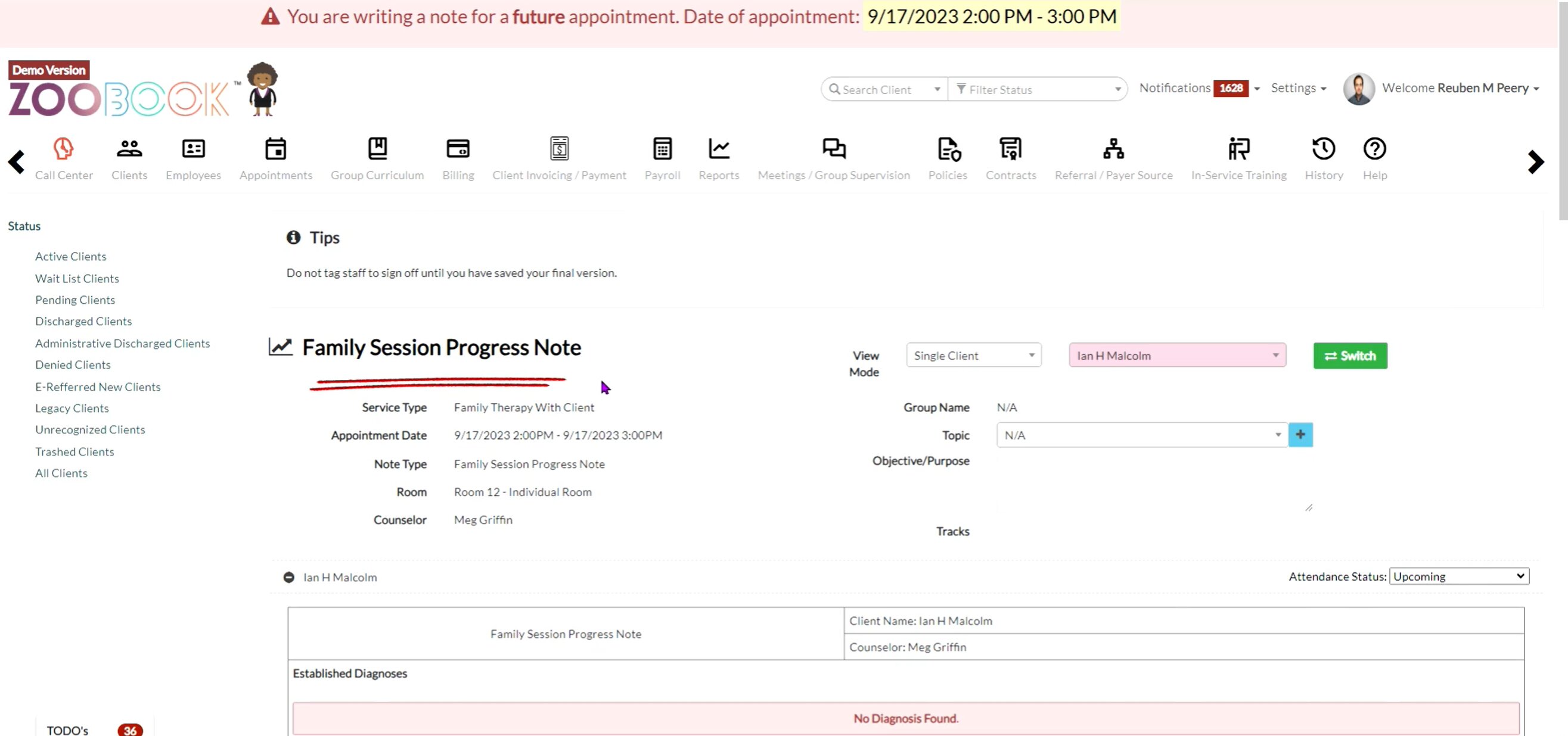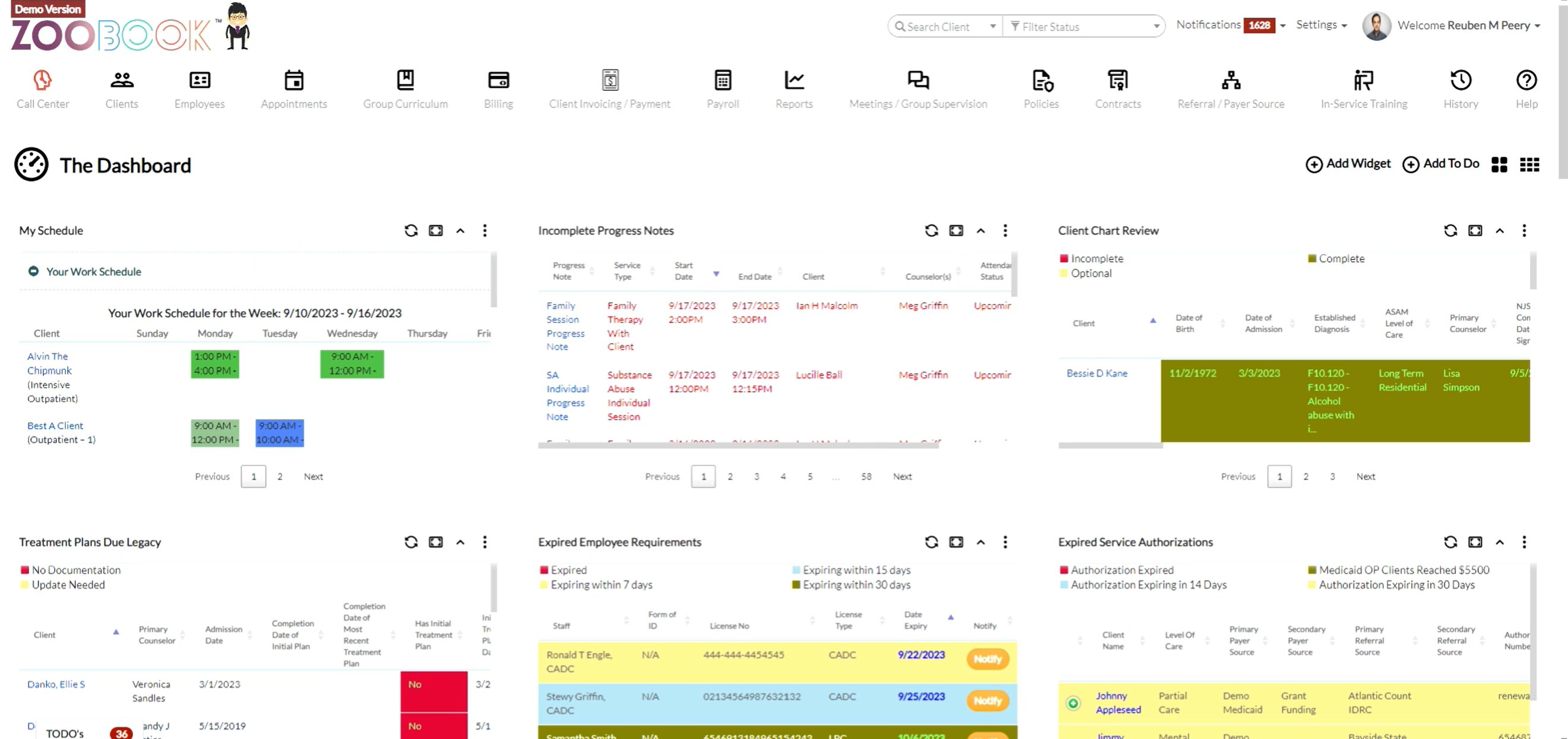 On the operations side, Zoobook Systems gives you powerful analytics and management features. Track referrals, attendance, and no-shows. Monitor daily and weekly client volume. Automate alerts for incomplete progress notes, treatment plans, and mandatory reviews.