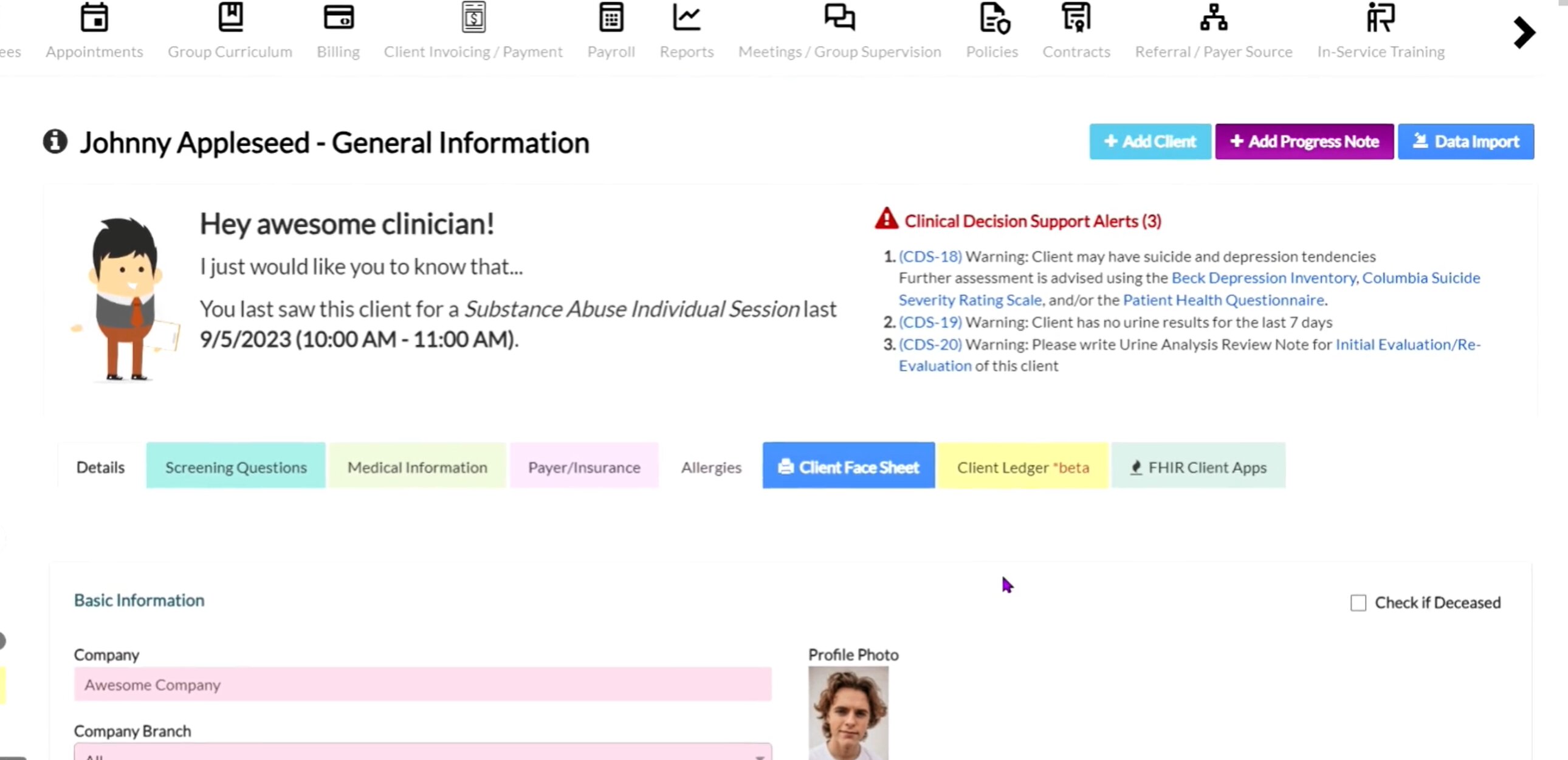 Use the HR module to manage credentials, supervision hours, time off, and staff productivity, and handle billing, payroll, and scheduling in the same system.